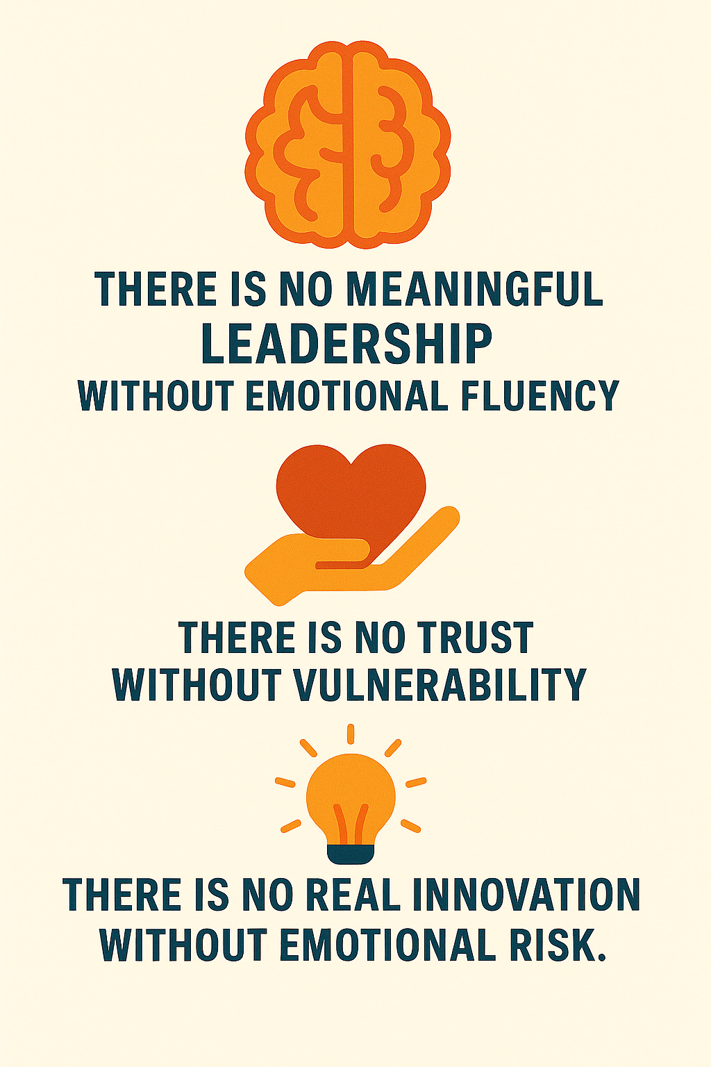 Leadership in the machine age isn’t defined by dashboards or titles—it’s defined by the capacity to feel, name, and navigate emotion with clarity and care. This visual distills the core thesis of The Myers Report: meaningful leadership begins with emotional fluency; trust only scales when we embrace vulnerability; and real innovation requires emotional risk. When leaders model openness, teams move faster, learn sooner, and create braver work. Use this as a daily checkpoint: Are we listening with empathy? Are we inviting honest feedback? Are we risking enough to discover what’s possible
